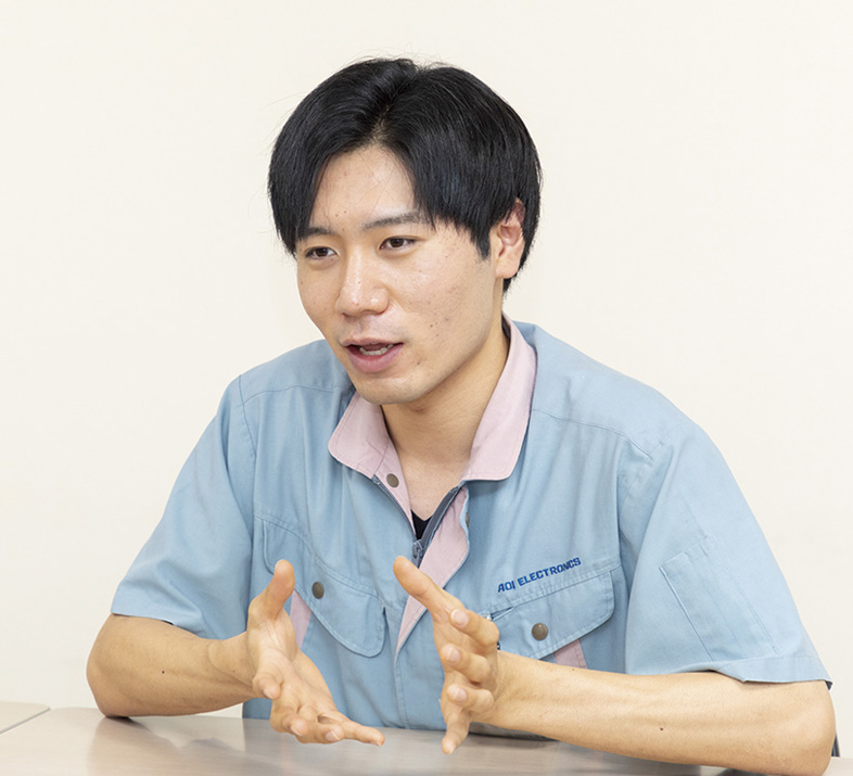 工場の各工程の装置や機器など、生産設備の組み立てを担当しています。業務ではミクロン単位で調整する必要があり、緻密さが求められます。難しい場面も多いですが、機械が実際に稼働している姿を見ると、生産性アップにつながっていると実感し、大きな達成感があります。