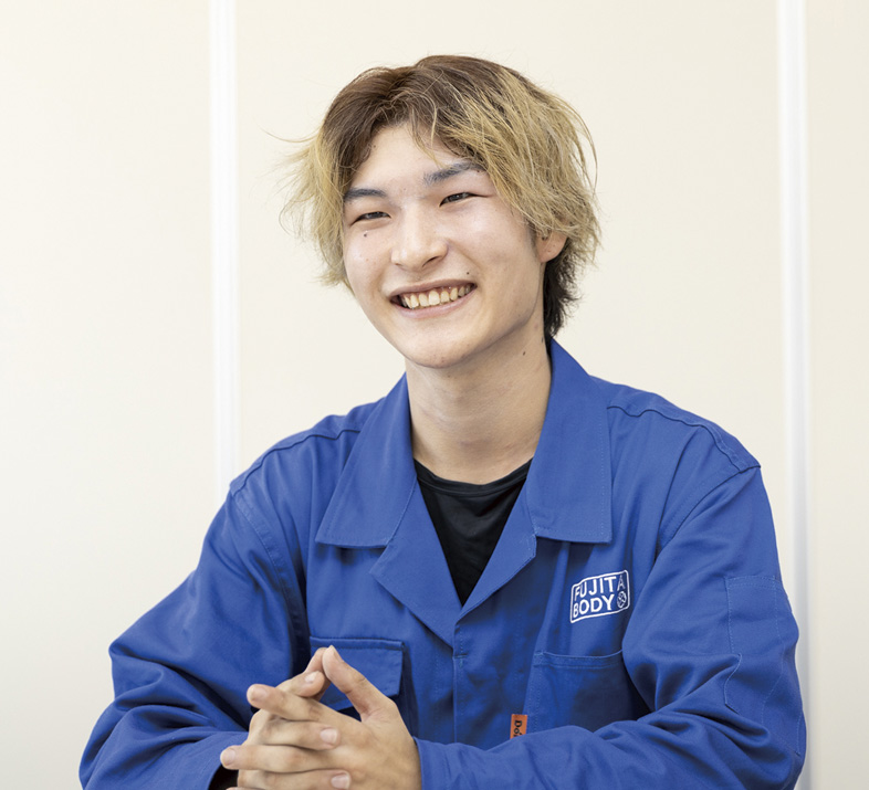 荷台のベース部分の溶接や鉄鋼の切断、穴開けなどを担当しています。重機などを運ぶ荷台は強度が必要で、特に溶接はその強度に関わる重要な工程。少しのミスが事故につながる可能性があるので、確認作業を徹底するよう気を付けています。溶接は入社してから身に付けた技術ですが、新しいことに挑戦できる環境で、毎日が新鮮で楽しいです。将来はチームの先輩のように的確な指示が出せる司令塔のような存在になりたいです。社内の雰囲気は良く、みんな仲が良いのも自慢です。