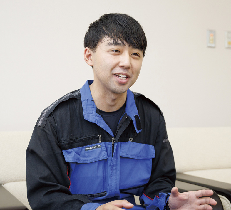 クリーニング工場で使用している脱水機や乾燥機などのメンテナンスを担当しています。修理に時間がかかると生産に影響が出てしまうので、いかに正確に、早く作業ができるかを考えて業務に当たっています。修理が完了し、現場の人から「ありがとう」と言われることが励みになっています。部署内は年上の人が多いですが、みんな気さくでアットホームな雰囲気です。今後は玉掛けや電気工事士の資格取得などにもチャレンジしていきたいです。